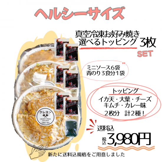 3枚セットで“送料無料”としますので、いろいろなトッピングでお楽しみいただけます☆